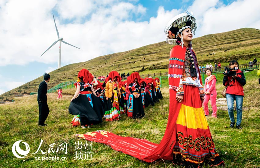 구이저우 이족식 결혼식에서 새로운 패션 코드 체감